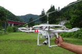 調査工程はドローンに専用の治具を装着し、縦または横方向の2点間に紐状のラインを張る。