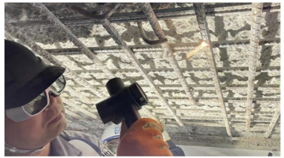 共同研究開発した「LSRシステム」は、鉄筋コンクリート構造物の断面修復工事において、レーザーによって鉄筋の錆とモルタルを除去するケレン技術であり、騒音・粉じんを抑えて環境に配慮した技術であることから、断面修復工事を市街地で施工する際には有効な技術であると考えています。