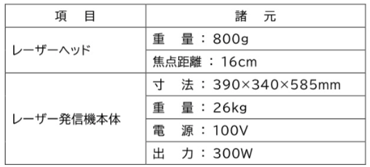LSRシステムの機械構成及び諸元を表-1に示します。また、レーザーヘッドを写真-2に、レーザー本体を写真-3に示します。
