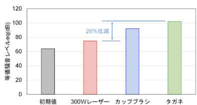 □従来工法(ジェットタガネを用いたケレン)と比較して、騒音・粉じんの発生を大幅に低減できる。