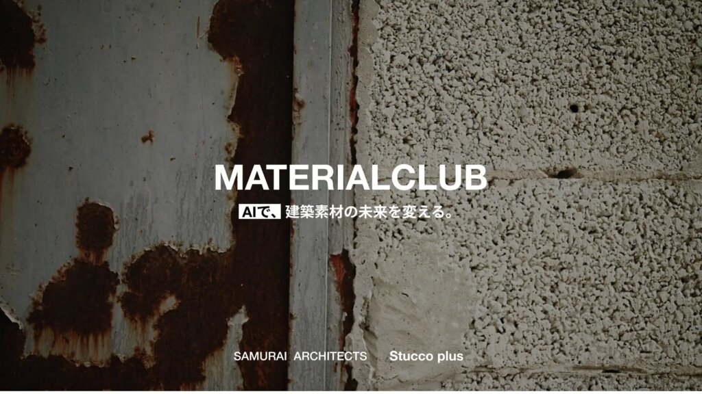 建築AIの開発を手がける 株式会社SAMURAI ARCHITECTS(本社:東京都港区 以下、SAMURAI ARCHITECTS) と、左官素材ブランド「スタッコプラス」を展開する 株式会社スタッコ(本社:京都府京都市、以下、スタッコ) が、AIと建築素材の関係を再定義する新プロジェクト 「MATERIAL CLUB(マテリアルクラブ)」 を共同で発表というリリースニュースをおとどけします。
