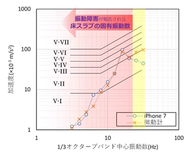 iPhoneの内蔵加速度センサーを活用することで、振動数25Hzまでの揺れを即座に可視化できるこの技術は、特に居住者の不快感や精密機器への影響といった、日常的な「住み心地」の改善に大きな力を発揮します。