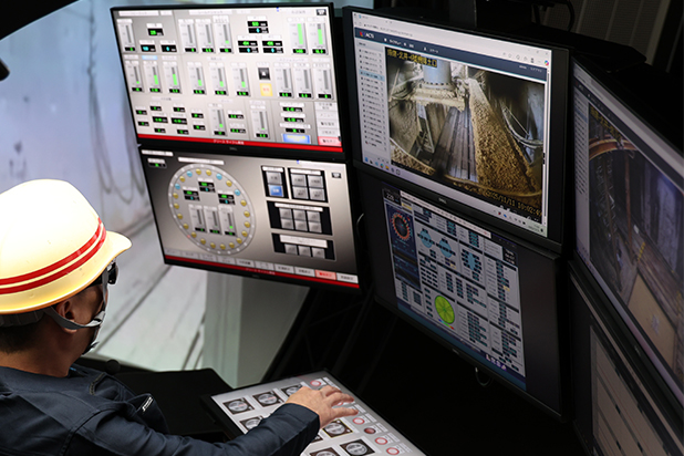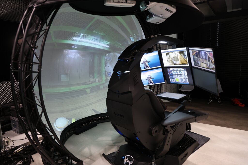 ドーム型モニターを設置し、現地の音声と映像をリアルタイムに再現することで、臨場感の高い操作環境を実現しています。